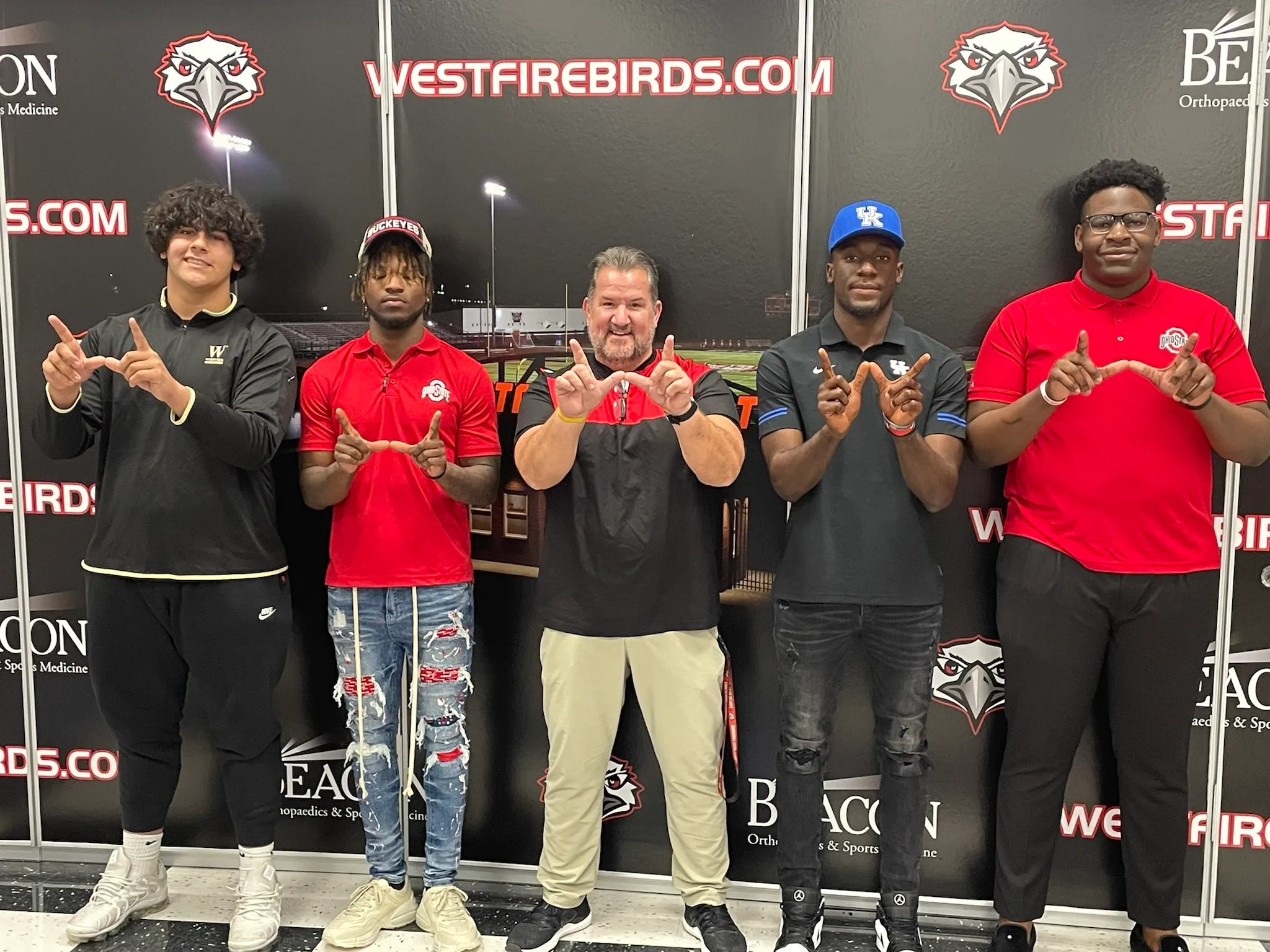 Lakota West Athletic Department hosted an athletic signing event on Wednesday afternoon in the new Dr. Kremchek funded Lakota West Football “War Room” on the first day of the NCAA Football Early Signing Period. Seniors Alex Afari, Jyaire Brown, Lathan McComis and Tegra Tshabola signed their commitment letters to continue their academic and athletic careers at their respective schools. The four seniors played major roles on a historic 2021 football season where the team set a school record for most wins in a season (11) and the longest winning streak (11) while working their way to the Elite 8 in the OHSAA football playoffs. The Lakota West Football program now boasts 183 player signings since the school opened in 1997. Lakota West will host another football signing event on the first day of the Regular Football Signing Period on February 2nd.